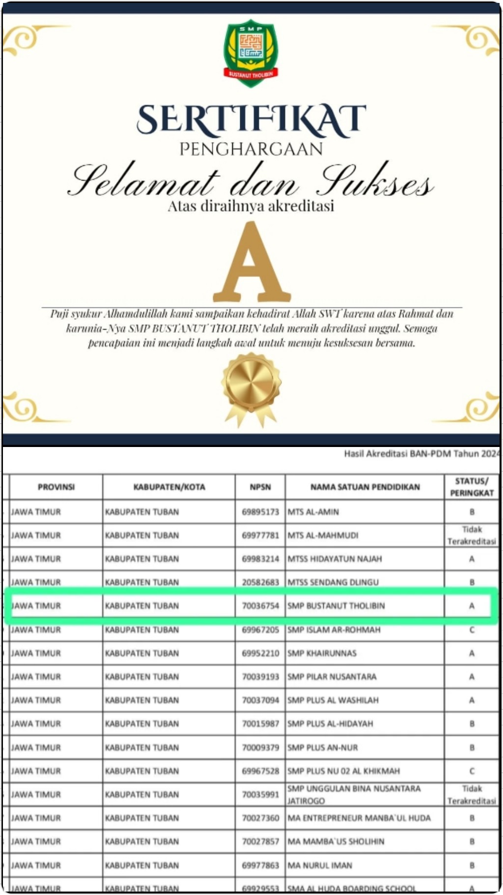 VISITASI AKREDITASI SMP BUSTANUT THOLIBIN TUBAN